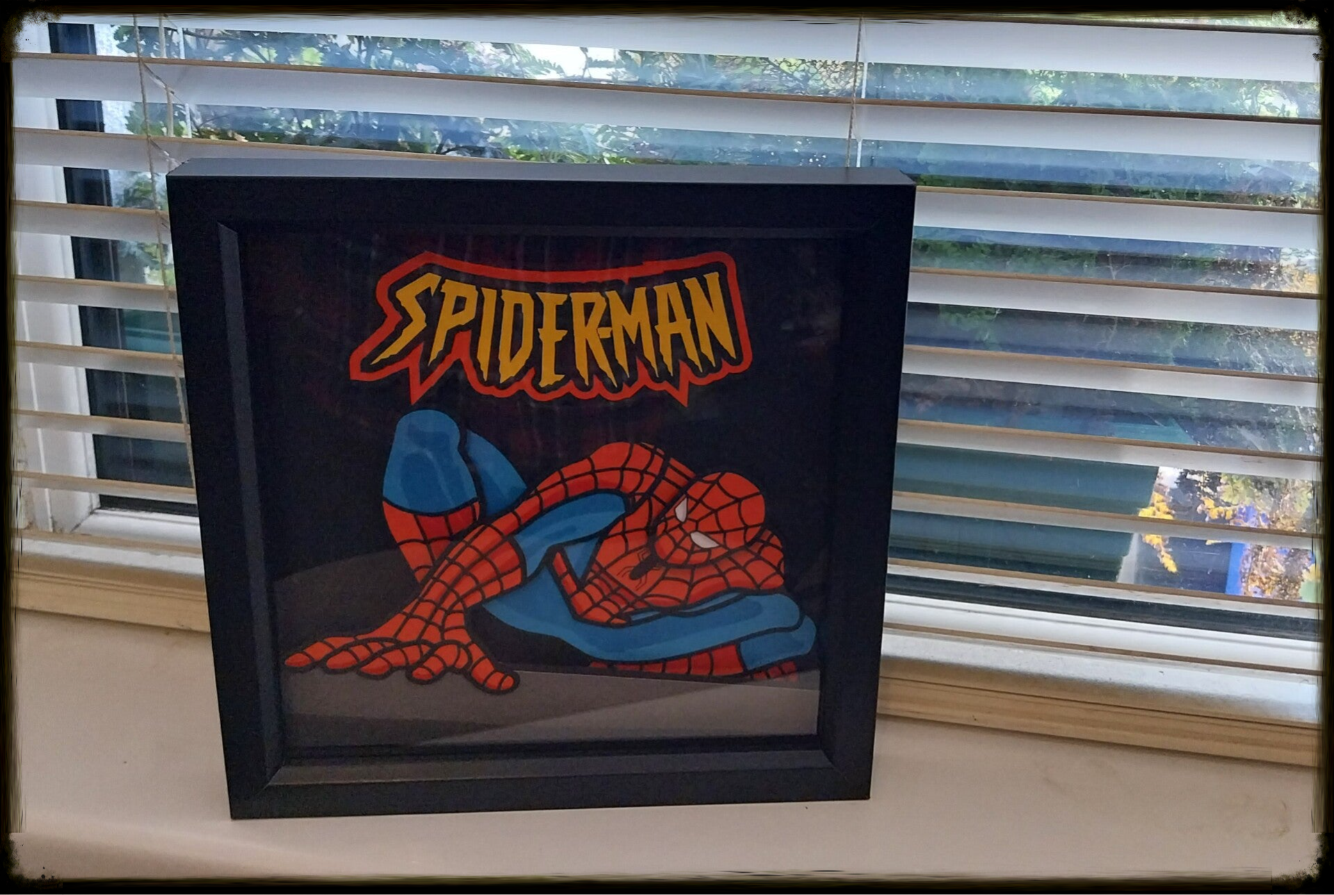 A 20cm x 20cm framed papercraft image of everyone's favourite web-slinger, Spider-Man, straight out of the rad 90's animated show! This delightful homage to a bygone era combines charm and craftsmanship in an eye-catching display, bringing Spidey’s iconic stylized features to life—those exaggerated eyes and signature red and blue suit, this piece practically swings off the wall, ready for action. It’s not just a decorative item; it’s a conversation starter, inviting guests to reminisce about their Saturday mornings spent glued to the TV screen while munching on cereal. So hang it proudly; after all, who wouldn’t want a glimpse of retro heroism keeping watch over their living space? Just don’t forget—great power comes with great responsibility... like dusting your décor!